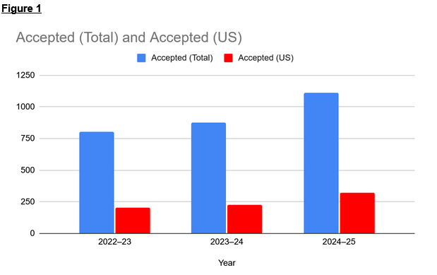 Between 2022 and 2025, US-origin accepted notifications increased by 66%, rising from 202 to 322 as displayed in Figure 1 [LINK, LINK, LINK]. This growth occurred alongside a broader increase in accepted notifications, which grew from 806 to 1,110 in the same period.
